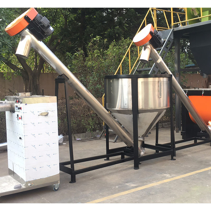 將PET塑料瓶料輸送至脫標(biāo)機(jī)入料口,脫標(biāo)機(jī)身前部有一段螺旋推送,將......